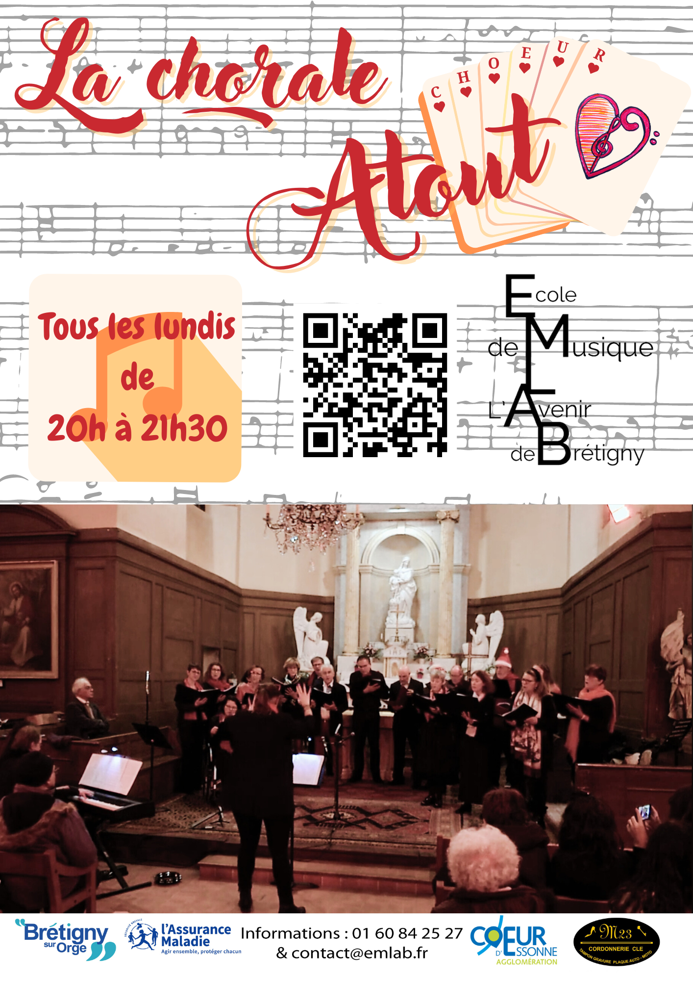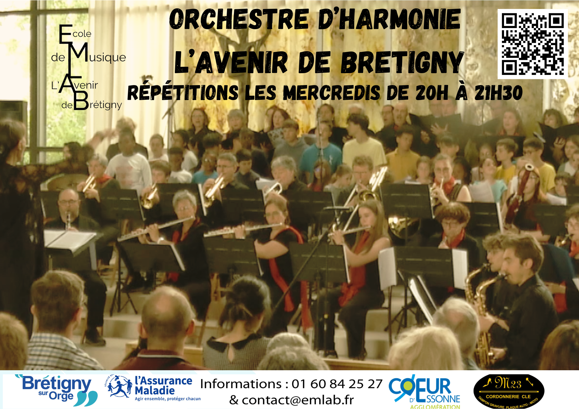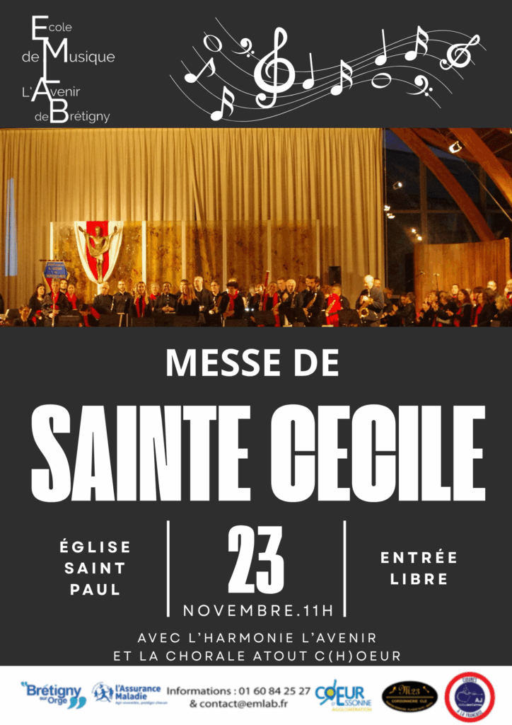 L’Ecole de Musique L’Avenir de Brétigny MARDI 11 NOVEMBRE 2025 – Cérémonies commémoratives Vous retrouverez l’EMLAB aux cérémonies commémoratives du 11 novembre. Au Plessis Pâté. 8h25 : début de la cérémonie A Brétigny sur Orge : 10h20 début de la cérémonie. DIMANCHE 23 NOVEMBRE 2025 Sainte Cécile Vous pourrez retrouver l’EMLAB, représentée par « l’harmonie l’avenir » ainsi que la chorale « Atout C(h)oeur » , à la messe de Sainte Cécile du dimanche 23 novembre à 11h en l’église Saint Paul de Brétigny sur orge. Inscriptions : Vous avez toujours la possibilité d’inscrire vos enfants ou vous même dans les classes d’instruments comme la clarinette, la flûte traversière, le hautbois, la trompette, le trombone, le tuba, l’accordéon et la harpe. Musicothérapie : -Vous avez un enfant en situation de handicap, vous pouvez l’inscrire auprès de notre musicothérapeute pour des séances de bien-être thérapeutique. – Mais aussi participer aux différents ensembles Orchestre symphonique ( La Licorne ), Orchestre d’harmonie ( l’Avenir), Orchestre Junior, Chorale Classique ( AtoutC(h)oeur ), Chorale Actuelle ( Bréti’Song ), Atelier Jazz, Groupes de Musiques Actuelles, Ensemble de Harpes, Ensemble Baroque, Batucada ( Batucalab ) et NOUVEAU l’atelier « Musique de chambre » |
