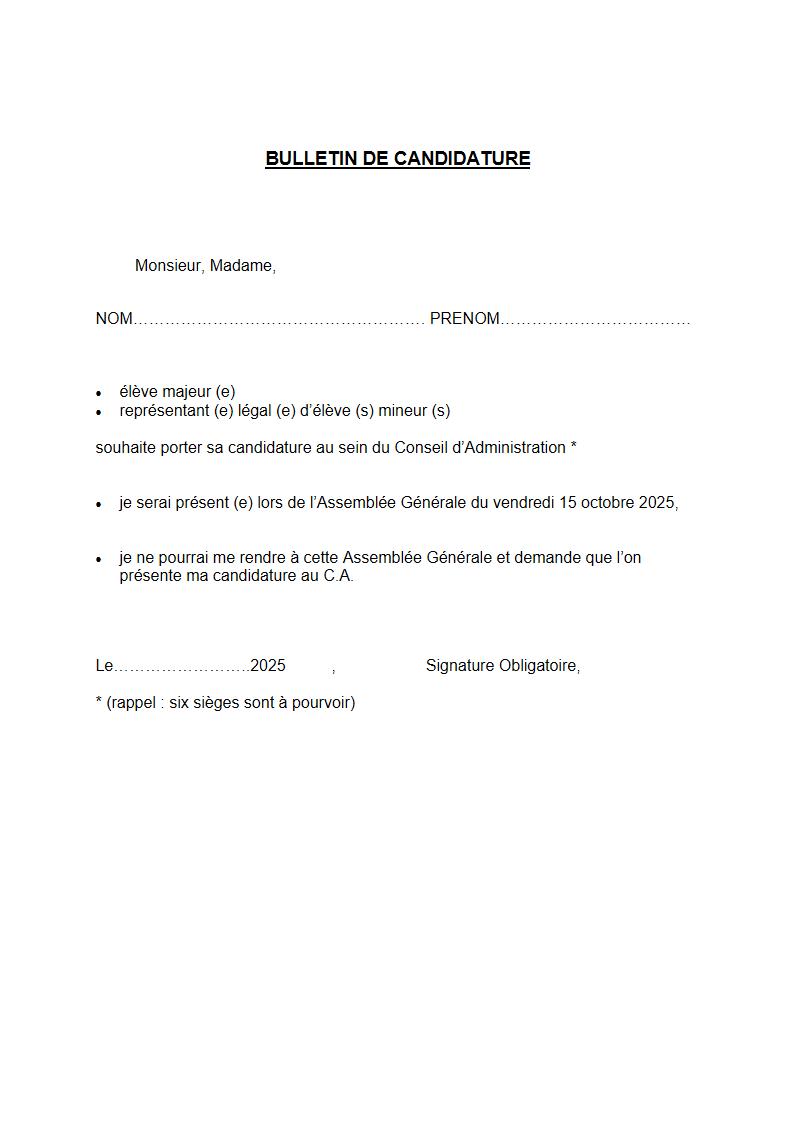» Candidatures » et » Pouvoir » AG 15/10/2025